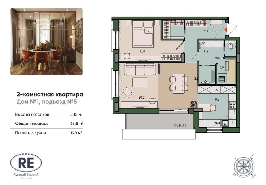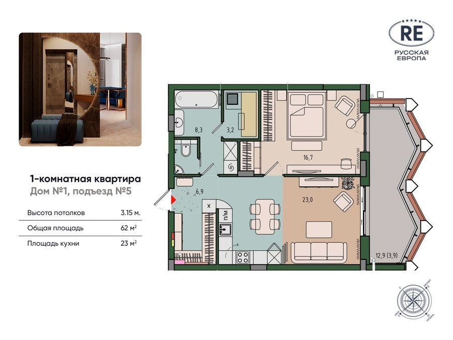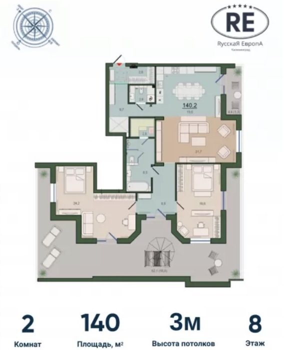 Каждая квартира — это индивидуальный проект по европейским стандартам эргономики, с высотой потолков 3 метра, что создаёт ощущение простора и свободы.
