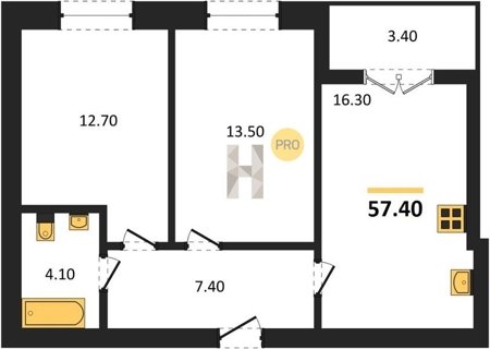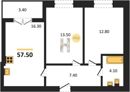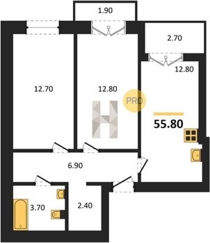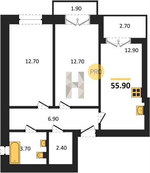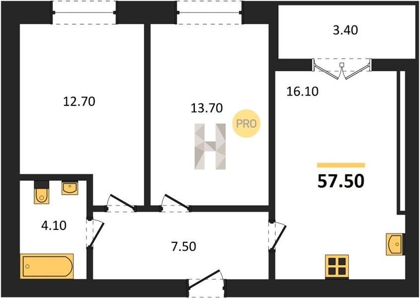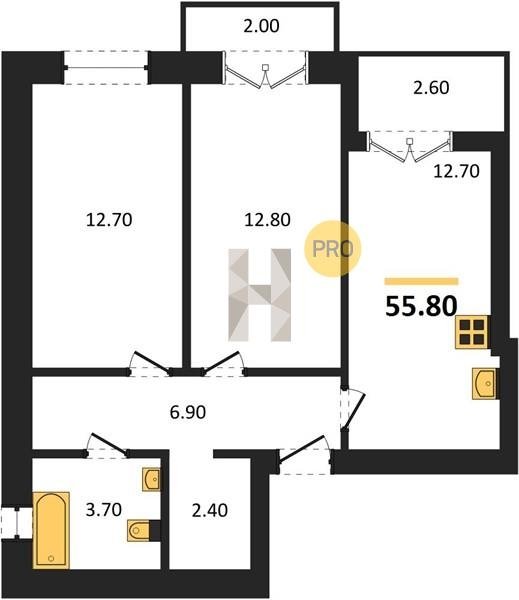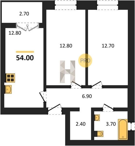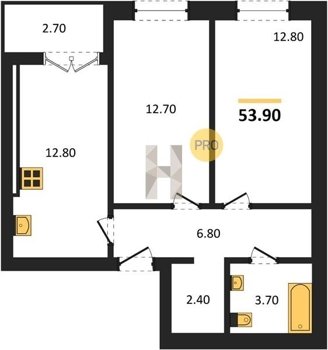 Площадь от 53.9 м2