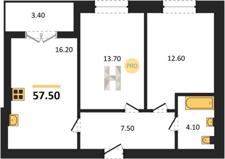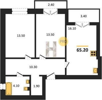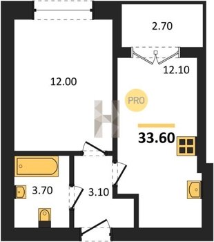 Площадь от 33.5 м2