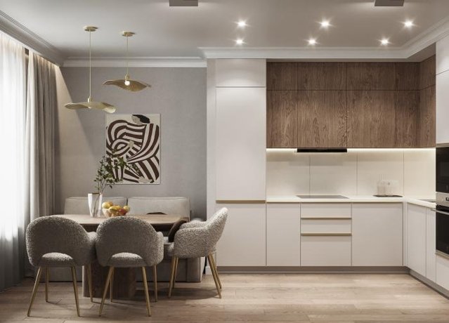 Каждая квартира выделяется просторной кухней, оптимизированной для комфорта и кулинарного творчества.