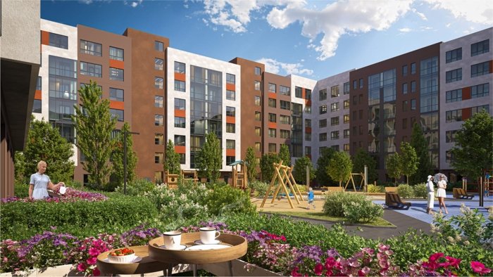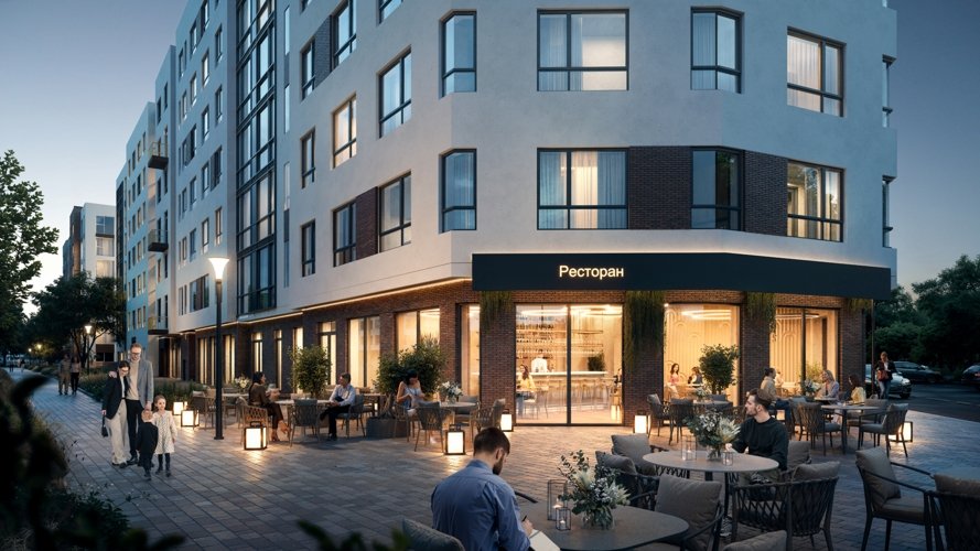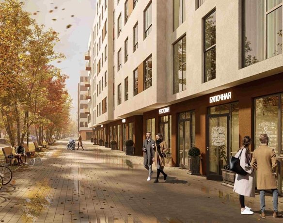 На первых этажах разместятся магазины, пекарни, кофейни, салоны красоты, досуговые центры и детские секции. Входы в эти помещения расположены со стороны улицы, что позволяет сохранить приватность во дворе